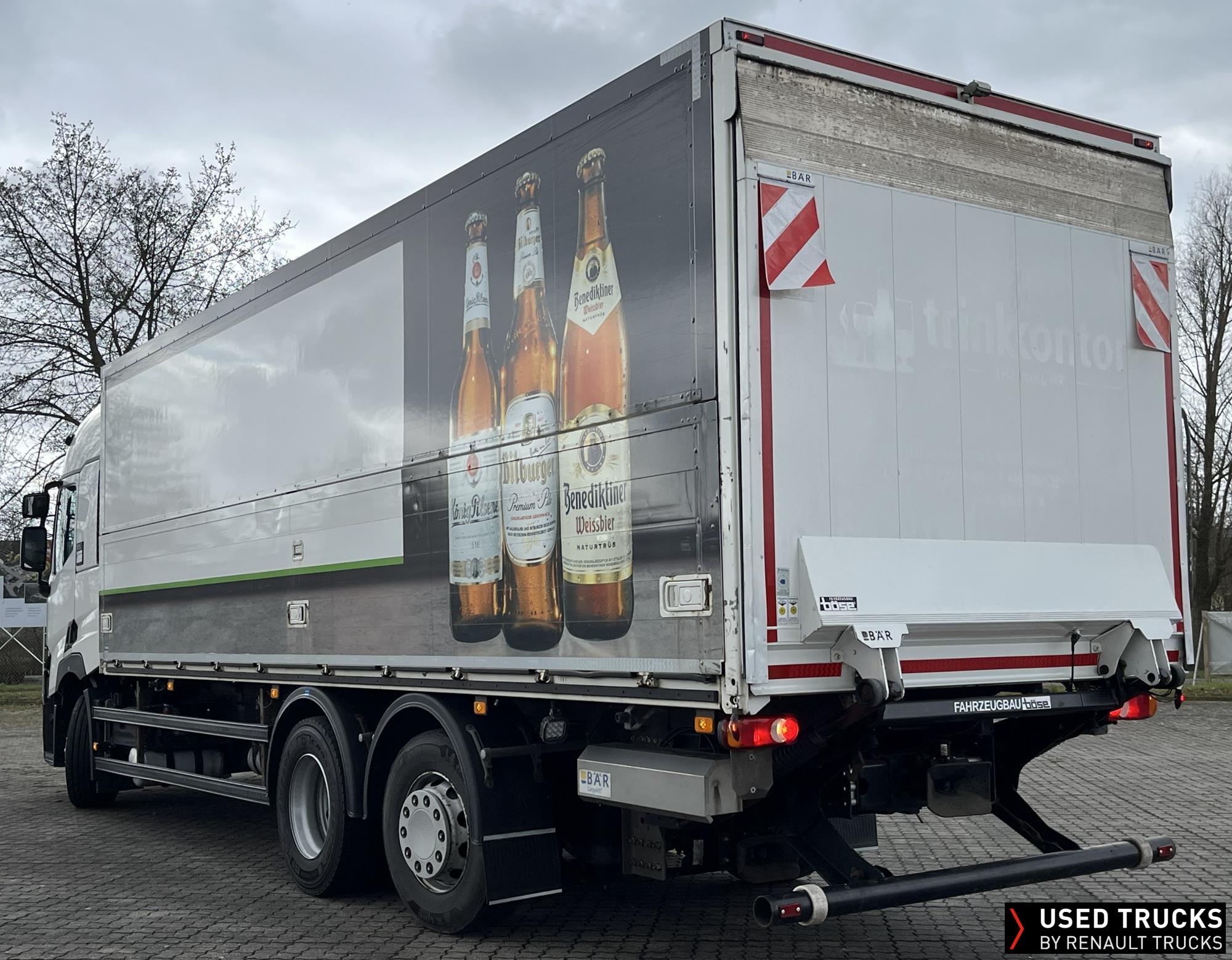 **Verkauf ausschließlich an Transportunternehmen innerhalb der EU / Sales exclusively to transport companies within the EU!**, **Böse Oversider Schwenkwandaufbau Überdach**, **Ladebordwand Bär Typ BC 2.000 S4U**, **Aufbauabmessungen 8.100 x 2.470 x 2.200 mm**, Kraftstofftank - rechts 630 l, **Achsentlastung 11,5t + 30%**, **kamerabasiertes Abbiegesystem**, **weitere Informationen zum Aufbau gern auf Anfrage**