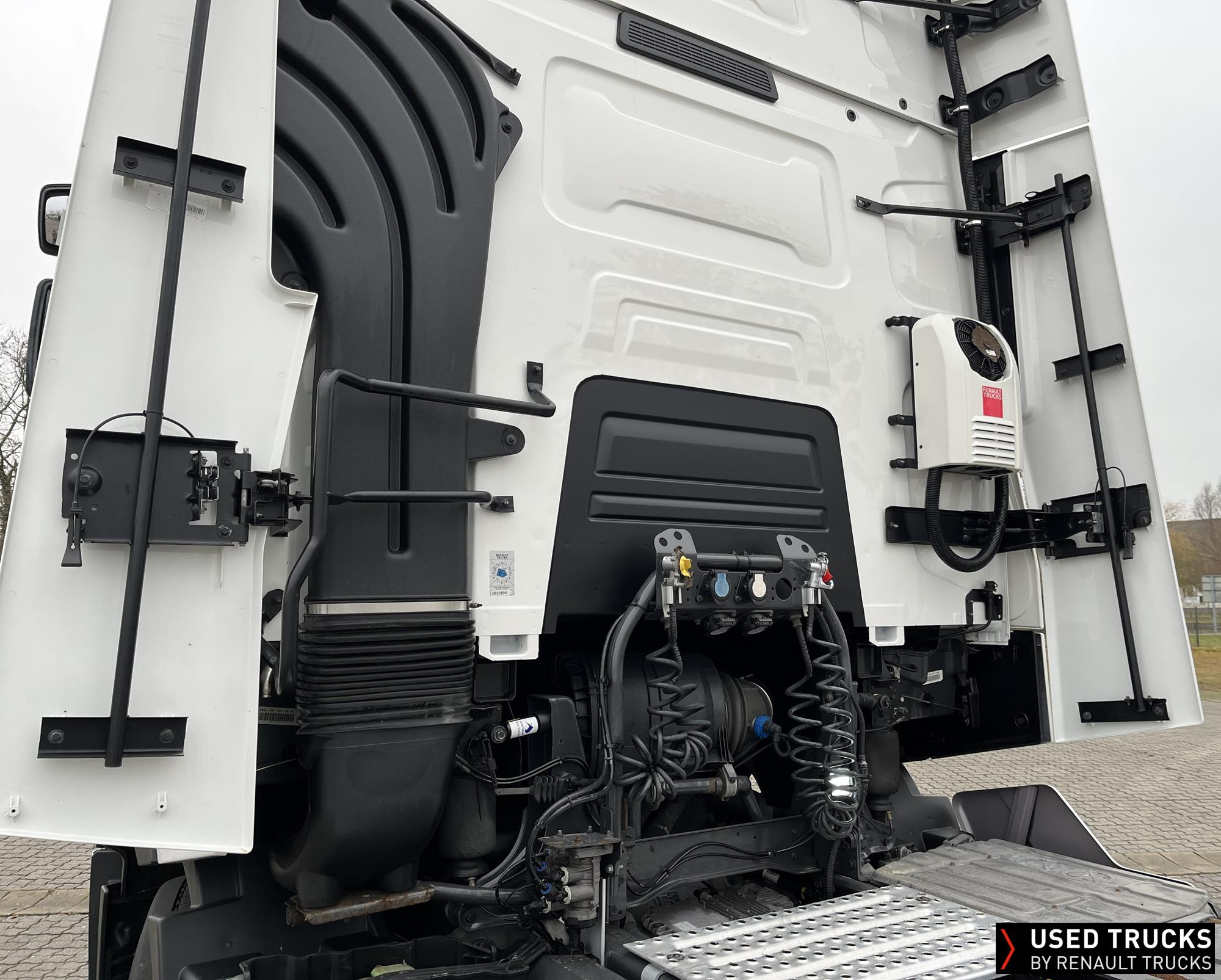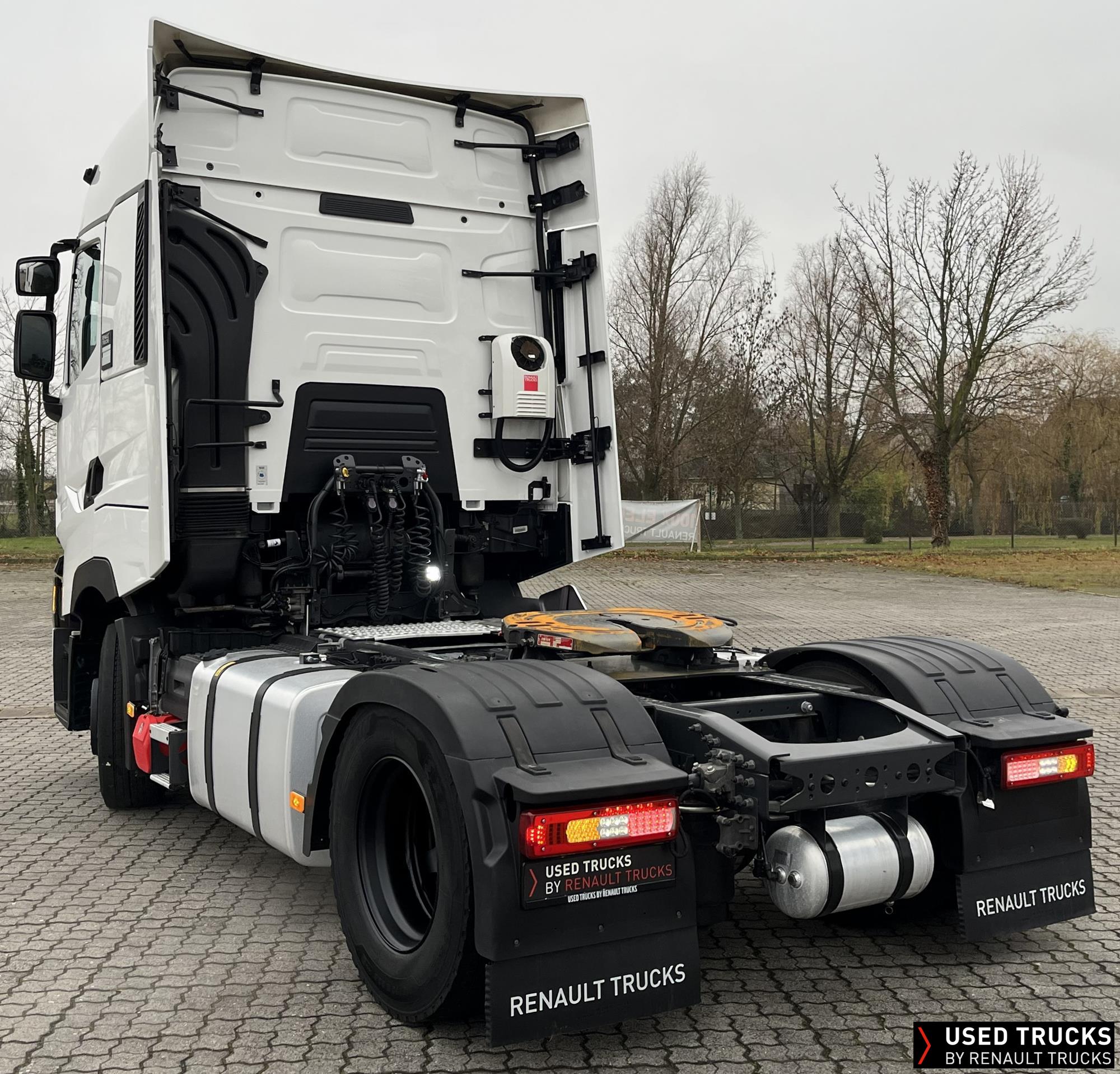 **Verkauf ausschließlich an Transportunternehmen innerhalb der EU / Sales exclusively to transport companies within the EU!**, Höhe Sattelkupplung 185 mm - Montage tief, Vorrüstung Scheinwerferträger am Dach, Schlusstraverse mit Vorrüstung Abschleppmaul abnehmbar, **akustischer Abbiegeassistent**